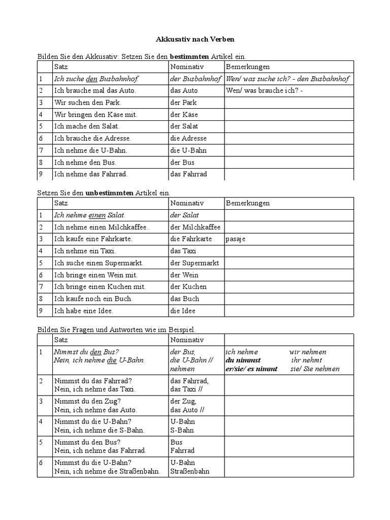 Dativ Und Akkusativ übungen mit Lösungen PDF